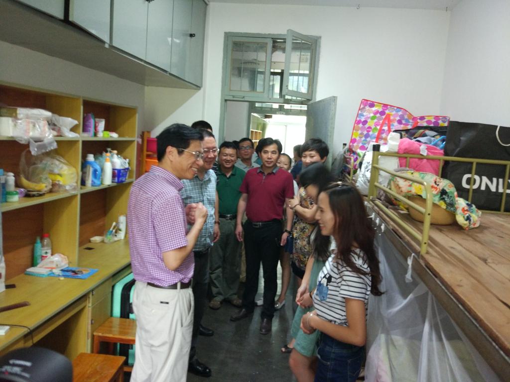 校领导们深入学生社区,走进学生寝室,亲切地询问寝室各成员学习和生活情况,同时不断叮嘱同学们要在暑假期间,特别是台风天气期间要注意人身财产安全。同时,要求学院要落实好值班制度,做好对暑期留宿学生的服务工作。郭书记每到一个寝室都与同学们进行了亲切交流与沟通,同学们也对慰问老师们进行了热情大方的接待,气氛温馨融洽。