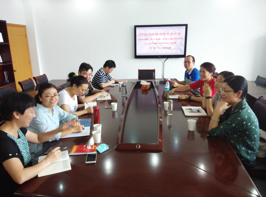 2016年9月28日上午8点,h图书馆 学术沙龙(2016年第6期)在11#412会议室如期举行。学术沙龙由产业经济研究所所长胡求光教授主持,产业经济研究所闭明雄博士做了精彩的学术报告。h图书馆 副院长杨丹萍教授、产业经济研究所教师和部分同学参加了此次学术活动。
