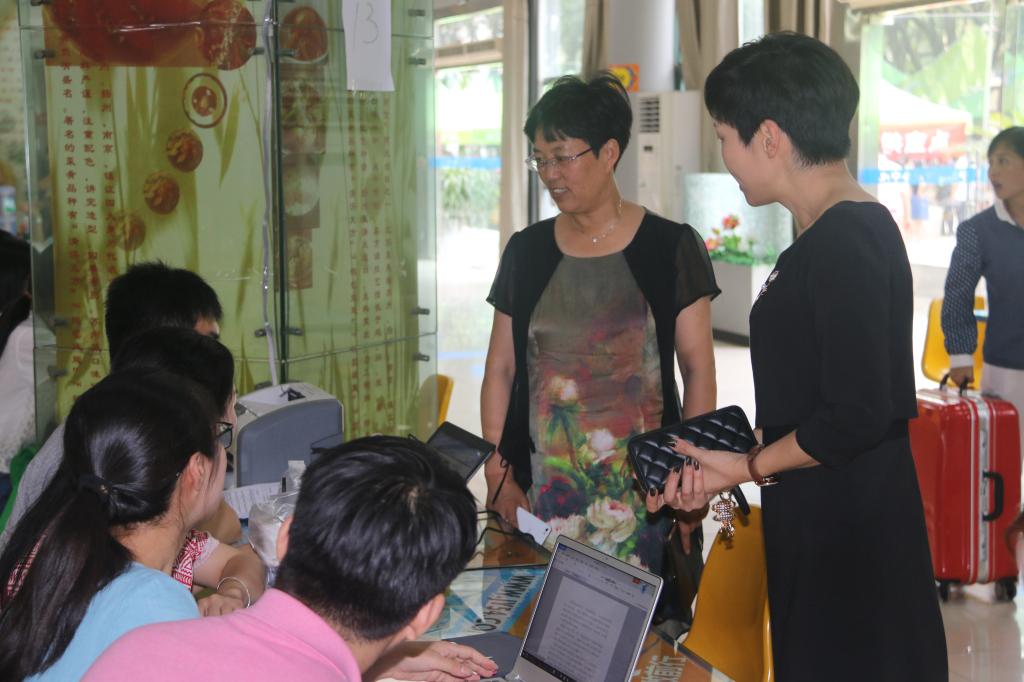 迎新期间,h图书馆 党委书记胡亚娥、副书记邵丽一同来到迎新现场对h图书馆 迎新生工作亲自进行指导,关切新生报到情况,并亲切地慰问了一线工作人员和志愿者们,对大家的辛苦付出表示关怀和肯定,希望辅导员老师和学生干部能坚守岗位,保质保量地完成迎新工作。之后胡书记一行深入学生宿舍,并邀请了部分学生家长代表在学院412会议室举行了家长座谈会,就双方关心的问题进行了深入交流。
