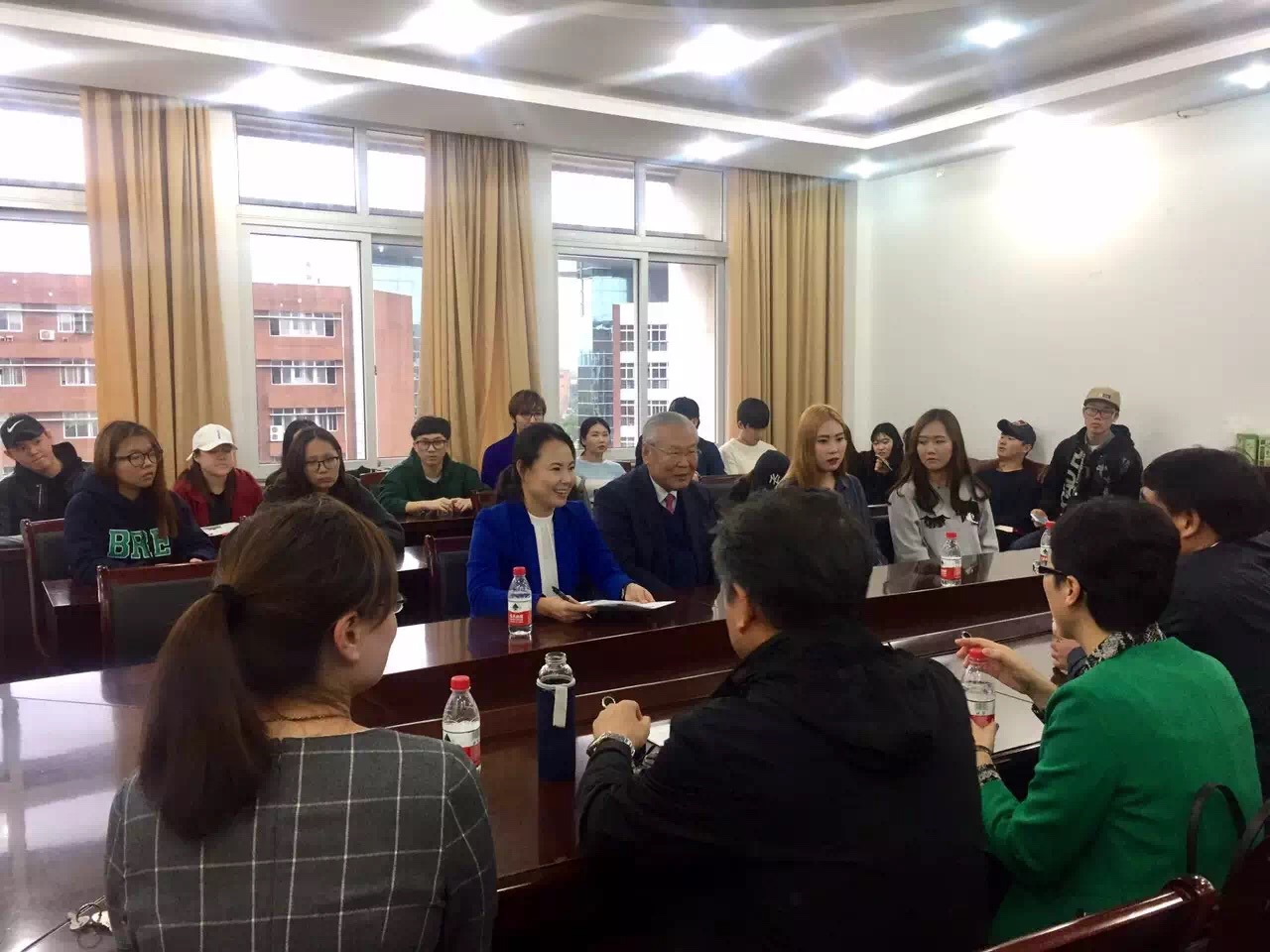 2016年10月31日下午,韩国昌信大学董事长姜秉道先生和教育院院长李吉莲教授前来h图书馆 访问。院长范柏乃教授热情接待了来访嘉宾,并在学院412会议室举行座谈会。教师代表邱妘教授、王其冬教授、白泉旺副教授,教务办、国际合作办、留学生办以及中韩2+2项目的留学生们一同参加了座谈。