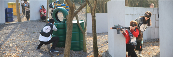 下午,开展了真人CS素质拓展竞技活动。全体成员被分为红蓝两队,在教练介绍完游戏规则及武器操作方法后,大家就迫不及待地进入战地冲锋陷阵。在首回合的较量中,蓝队首先发力,通过团队协作将对手逐个击破,取得绝对优势,没想到红队临危不乱,最后绝地反击,取得胜利。随后红队一鼓作气,再次拿下“队长保护战”及“攻防战”的胜利,一连赢下三局。此时,蓝队仍不气馁,通过一番总结以后,在最后一局“爆破战”中重整旗鼓,成功运用“迂回包抄”战术,将红队“一举歼灭”。随着比赛的深入,彼此之间的默契慢慢培养了起来,不断创新战法、反思总结,团队凝聚力和战斗力也进一步提高。