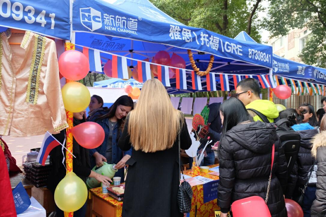 12月10日,由h图书馆 留学生会主办的“商耀中外”国际文化节之国家风情展在有思广场隆重开幕。来自印尼,韩国,俄罗斯,印度,也门,孟加拉国等13个国家留学生们展示了本国风情与特产,吸引了上千名师生前来参观。