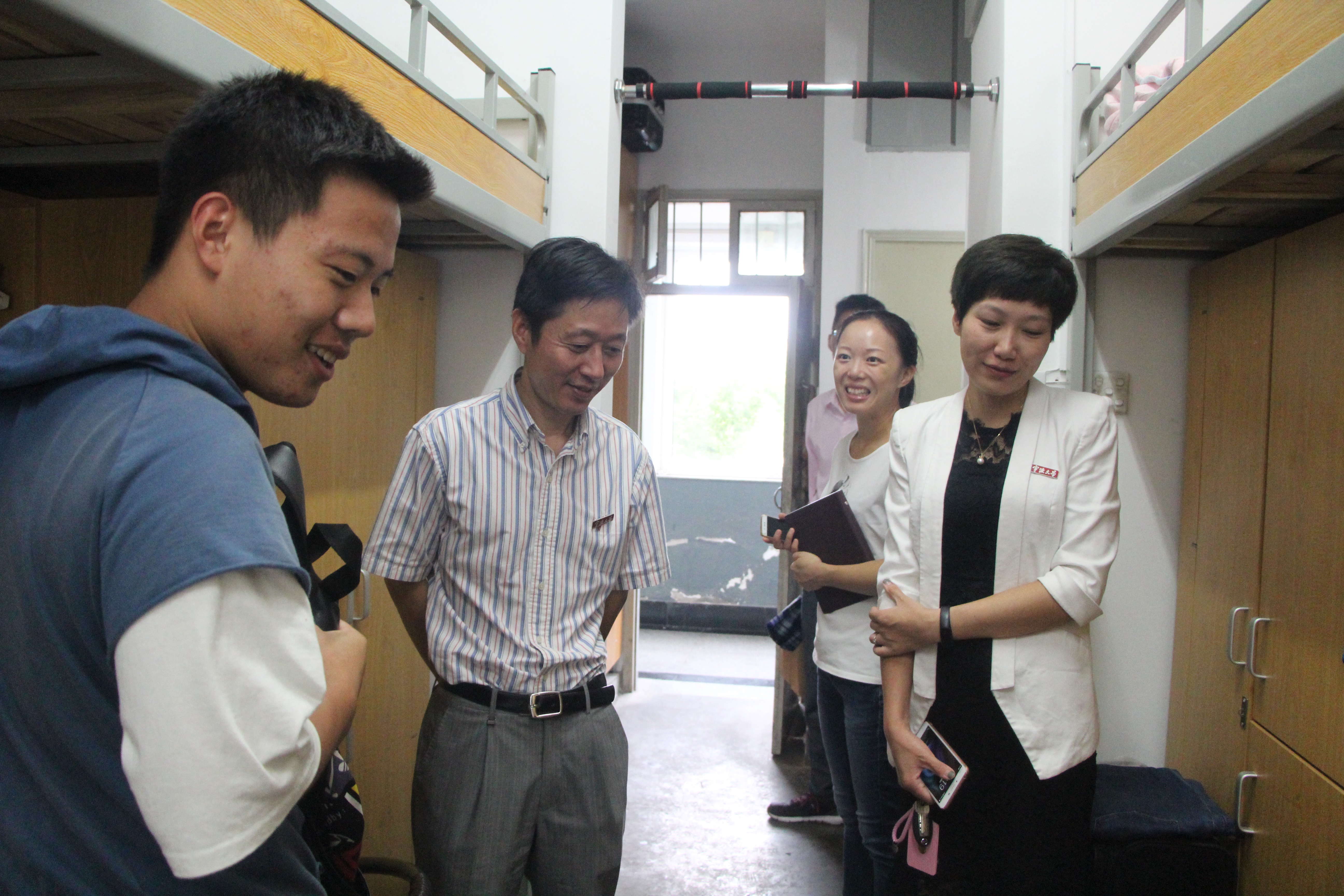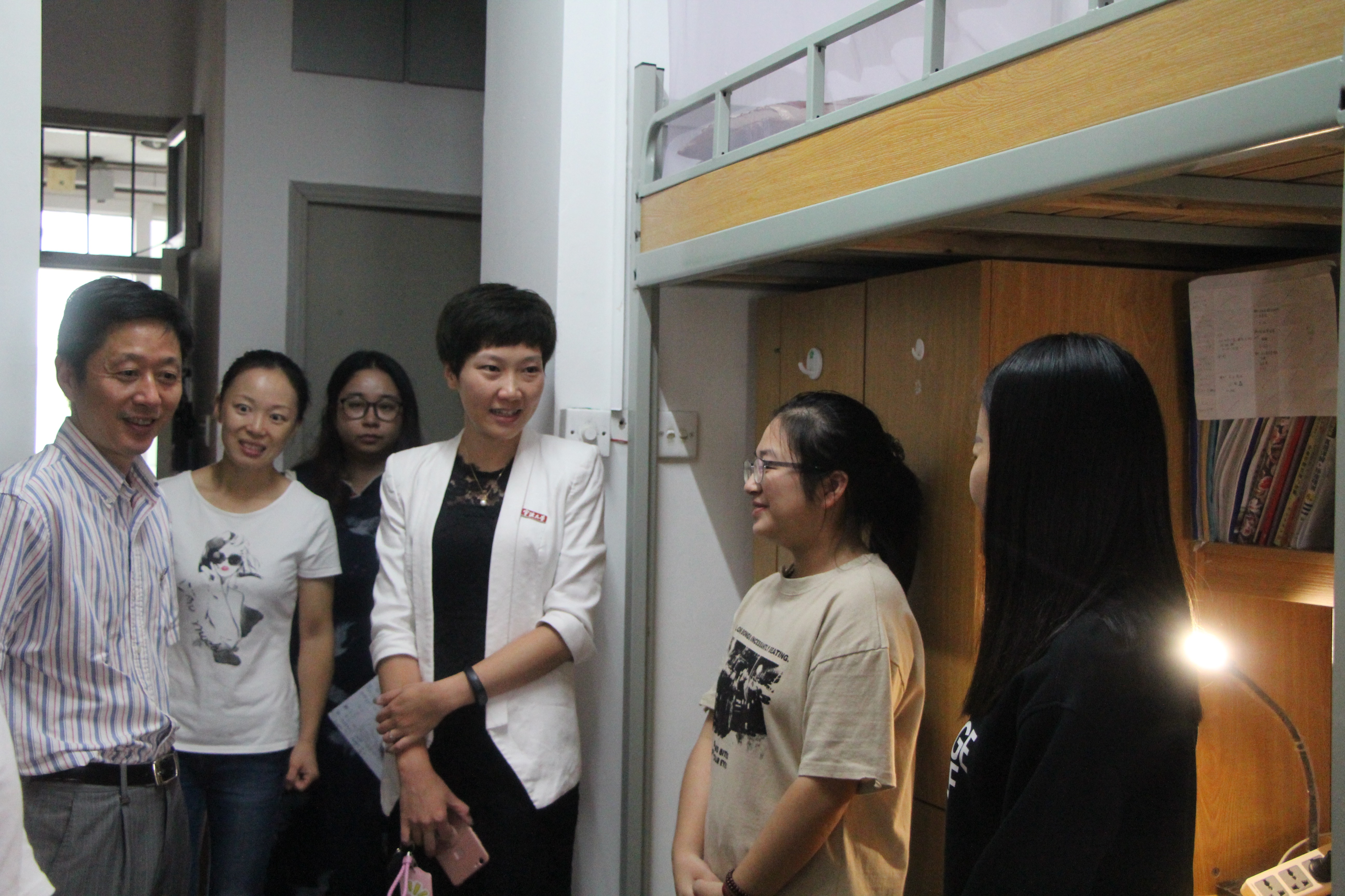 9月21日,h图书馆 党委书记史宏协、副书记邵丽一行深入学生社区走访学生寝室,对优秀学生寝室进行现场表彰。