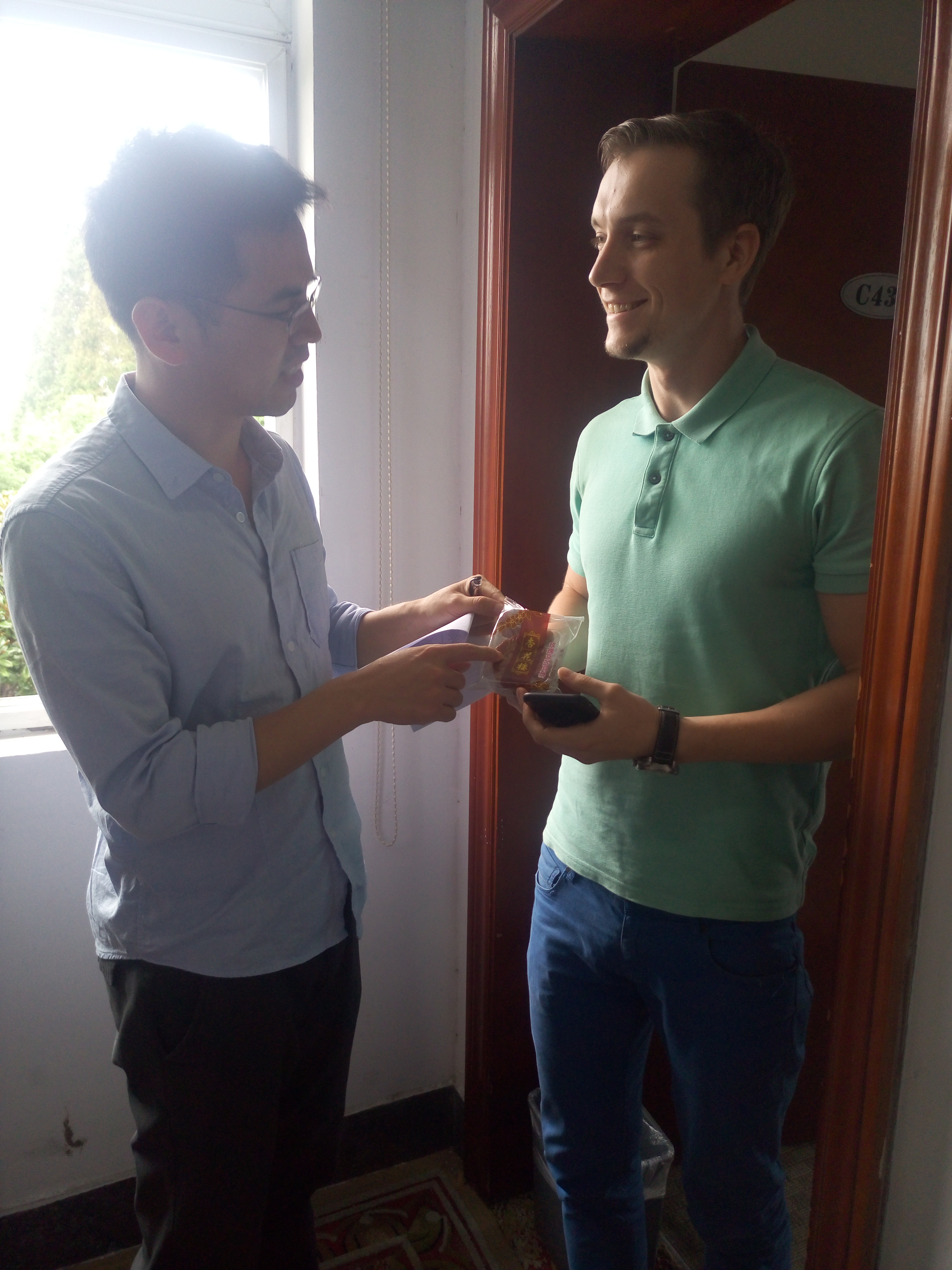 9月29日下午,学院学工办辅导员毛跃祖、蒋鹏涛带领h图书馆 留学生会主要干部走访了留学生公寓,并慰问了h图书馆 的留学生,送上了国庆和中秋的节日祝福和慰问。在询问和了解留学生的假期去向后,两位老师叮嘱同学们假期注意安全,增强安全防范意识,并对国庆长假的合理安排给予了建议和指导。