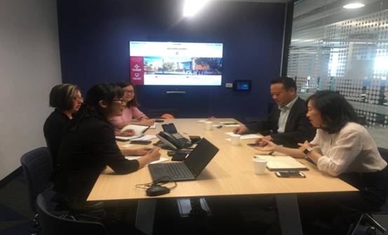 在University of Canberra访问期间,陈老师一行与商业、政府与法律学院院长Lawrence Pratchett教授; Martin Drinkwater副院长;国际服务处Frank Guo主任进行了亲切友好交流。双方在极为友好的气氛中回顾了项目从开始创办至今的发展历程,同时,我们还就教师访学、学生交换项目以及教学科研领域的深入广泛合作进行了探讨,这次会谈收获丰硕,大家一致希望h图书馆 与堪培拉大学能够一直密切合作,培养更多国际化精英人才。