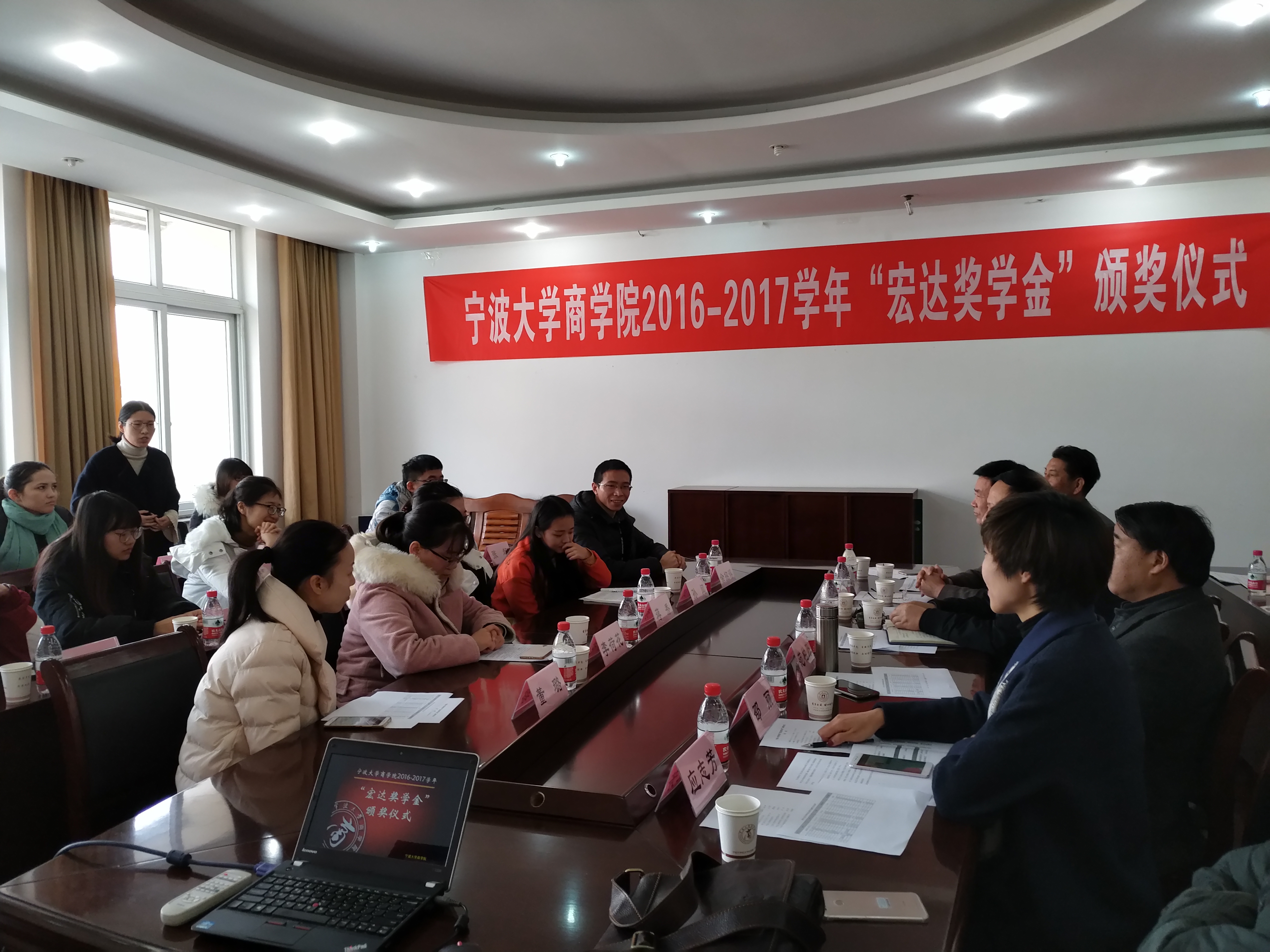 2017年12月9日上午,h图书馆 2016-2017学年“宏达奖学金”颁奖仪式在h图书馆 412会议隆重举行。宁波宏达货柜储运有限公司董事长陆汉幸、原宁波市北仑区王志明区长、原宁波市北仑区人大顾惠良副主任、h图书馆 院长范柏乃、h图书馆 工商管理系教师应志芳及16名获奖学生出席颁奖仪式。h图书馆 党委副书记邵丽主持颁奖仪式。