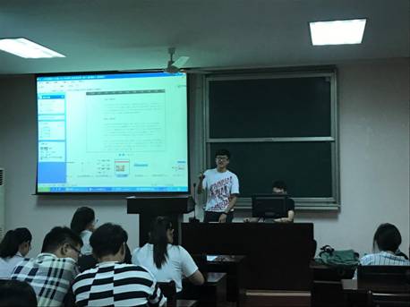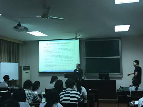 接着,两支获得2017年度校级、院级优秀实践团队的“善行千里,畲汉同梦”h图书馆 赴丽水景宁畲族自治县暑期社会实践团与“梦起甬畔,情落蓬莱”h图书馆 岱东踏浪逐梦行团队展示了他们的暑期社会实践内容和特色。随后,两支队伍的主要负责人15市场营销的方慧、林小晶、15CPA的方涵宇为今年要出征的45支团队介绍了调研方法和实践经验,分享了实践中的点滴故事。最后,团委宣传部干部宋先样介绍了h图书馆 暑期社会实践信息宣传工作要求。