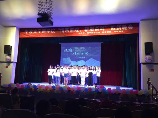 9月22日,h图书馆 举办的“情系商院,新聚甬畔”迎新晚会在锦绣小剧场拉开帷幕。2017级和2018级共15个新生班级100余名同学参加了晚会表演。