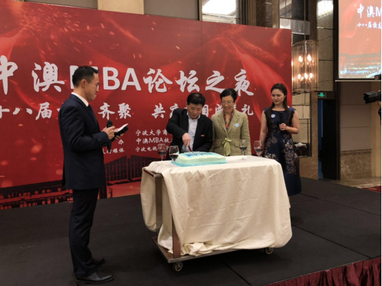 随后,嘉宾和校友们移步至隔壁大厅享用自助晚宴。校友会精心准备了庆祝中澳MBA项目十八岁成年礼的生日蛋糕。金院长和创始人邱教授一同登台分切生日蛋糕,并同全场校友们举杯祝福中澳MBA项目蒸蒸日上,越办越好。晚宴现场还为此次论坛举办做出贡献的校友和组织颁发了奖杯,进行了游戏抽奖。在众人的欢声笑语和举杯祝福声中,第九届h图书馆 中澳MBA论坛圆满地画上了句点。