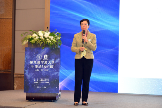 最后登台分享的是中澳MBA项目创始人邱妘教授。邱教授为校友们带来了题为《战略、管理会计与企业价值创造》的分享。在h图书馆 执教三十余载的邱教授,一登台就仿佛再度站到了中澳MBA的课堂,对着台下十八个年级济济一堂的中澳MBA学生又开始了智慧的启迪。以人工智能、大数据和云技术开篇,邱教授向学生们描述了在日新月异的全球市场环境和经营环境下,企业所要面临的挑战。为更好地生存和发展需要,企业应积极响应时代号召,及时进行转型变革,实现价值创造。接着,邱教授通过一张战略制定、战略执行、预算管理、战略成本管理、经济业绩/价值图来对战略制定、管理会计与企业价值之间的关系展开阐述,并以华为十余年财务架构及账务处理方式从传统迈向共享模式为例,指出当下及未来互联网+时代的管理会计应该与大数据融合,并提出企业家们应该勇于拥抱挑战,才可走得更远。最后,通过描述管理会计应用框架体系在宁波市应用试点的现状和所面临的问题,再次呼吁企业家们应该对管理会计应用框架体系在企业中的作用和价值创造引起重视,要进一步规范企业的财务,引入专业的财务管理方案,进一步贡献企业的价值创造。