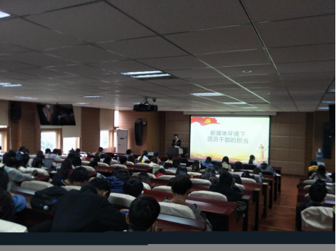 2018年11月8日中午,院党委副书记邵丽在学院109为h图书馆 团校学员上了一讲题为“新媒体环境下团员干部的担当”专题讲座,100名团校学员认真听讲。