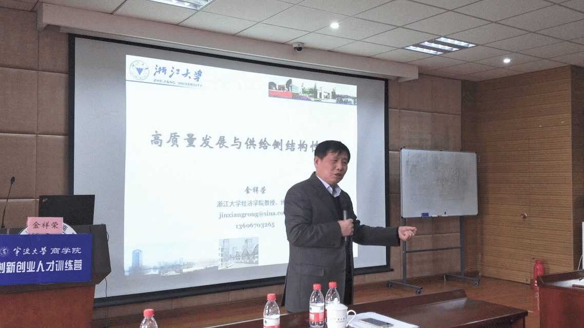 12月12日下午,h图书馆 第四期创新创业人才训练营第五讲在学院109报告厅顺利举行。金祥荣院长为训练营学员作了题为《高质量发展与供给侧结构性改革》的主题讲座。学工办主任董璐、辅导员汪杰峰及95名学员出席讲座,讲座由团委书记陈彬主持。