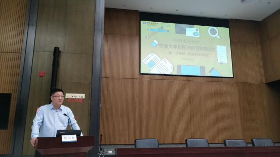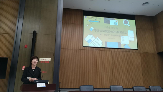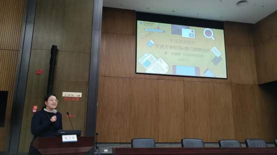 中国建设银行宁波市分行副行长韩国辉在活动中发言,总结了h图书馆 E银行近两年的发展经验,并对未来提出展望。我校h图书馆 党委副书记邵丽在仪式上致辞,对校园E银行这样一个产教结合、校企合作的模式表示大力支持,同时对下一届的校园E银行成员们提出“三转一推”的期望,鼓励成员一转,转被动落实为主动担当;二转,转单项服务为多项互动;三转,转简单的实践体验为科研成果输出;一推,在实干的基础上利用宣传和好资源推送发展。