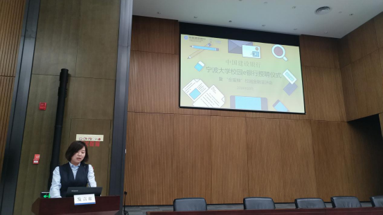 10月15日下午,第三届中国建设银行h图书馆 校园E银行授聘仪式暨“金蜜蜂”校园金融宣讲活动在中国建设银行宁波市分行圆满落幕,本次活动在h图书馆 第三届校园E银行成员受聘仪式的基础上加入了金融宣讲,在鼓励新成员以崭新的姿态与面貌面对下一年工作的同时也对同学们进行了金融方面的教育。中国建设银行宁波市分行副行长韩国辉,h图书馆 院长金祥荣、副书记邵丽等领导和嘉宾出席了本次活动。