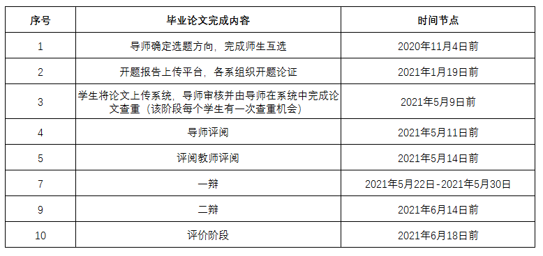 h图书馆 2021届本科毕业论文主要工作时间节点