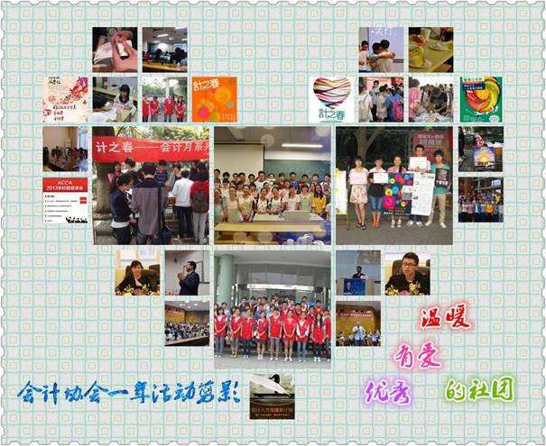 会计协会成立五年半以来,在建设社团的工作上一直坚持共同进步的理念,为同学们提供最优质的信息服务。至今,协会的工作也得到了校内外各界的肯定和认可,会计协会曾被评为2009年度校级十佳社团,2010年度h图书馆 优秀社团,2011年度校级十佳社团,2011年度h图书馆 优秀社团,2012年度校十佳社团,2012年度h图书馆 优秀社团,2013年浙江省优秀学生社团,2013年度宁波市明日甬商创业联盟优秀学生社团。