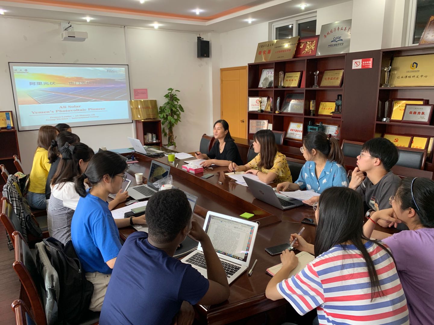 8月10日下午,h图书馆 2020年“互联网+”省决赛项目指导会在包玉书科技楼11号楼412室举行。院党委副书记韩雯琛、院团委副书记章舒怡、辅导员钟冬冬以及省决赛项目团队成员参加会议。