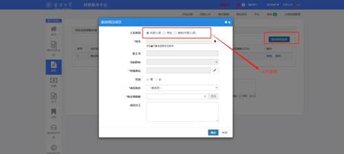 4. 进入项目组成员,请确认成员是否完整。特别是项目中有学生的参与的,请完善学生身份类别。成员信息有问题的,进入科研系统h图书馆,左侧的项目界面,点击操作下拉框下的成员调整申请,进入成员调整界面进行添加和修改,待项目主管审核之后,会自动补充到项目经费公开一览表,最后再提交即可。