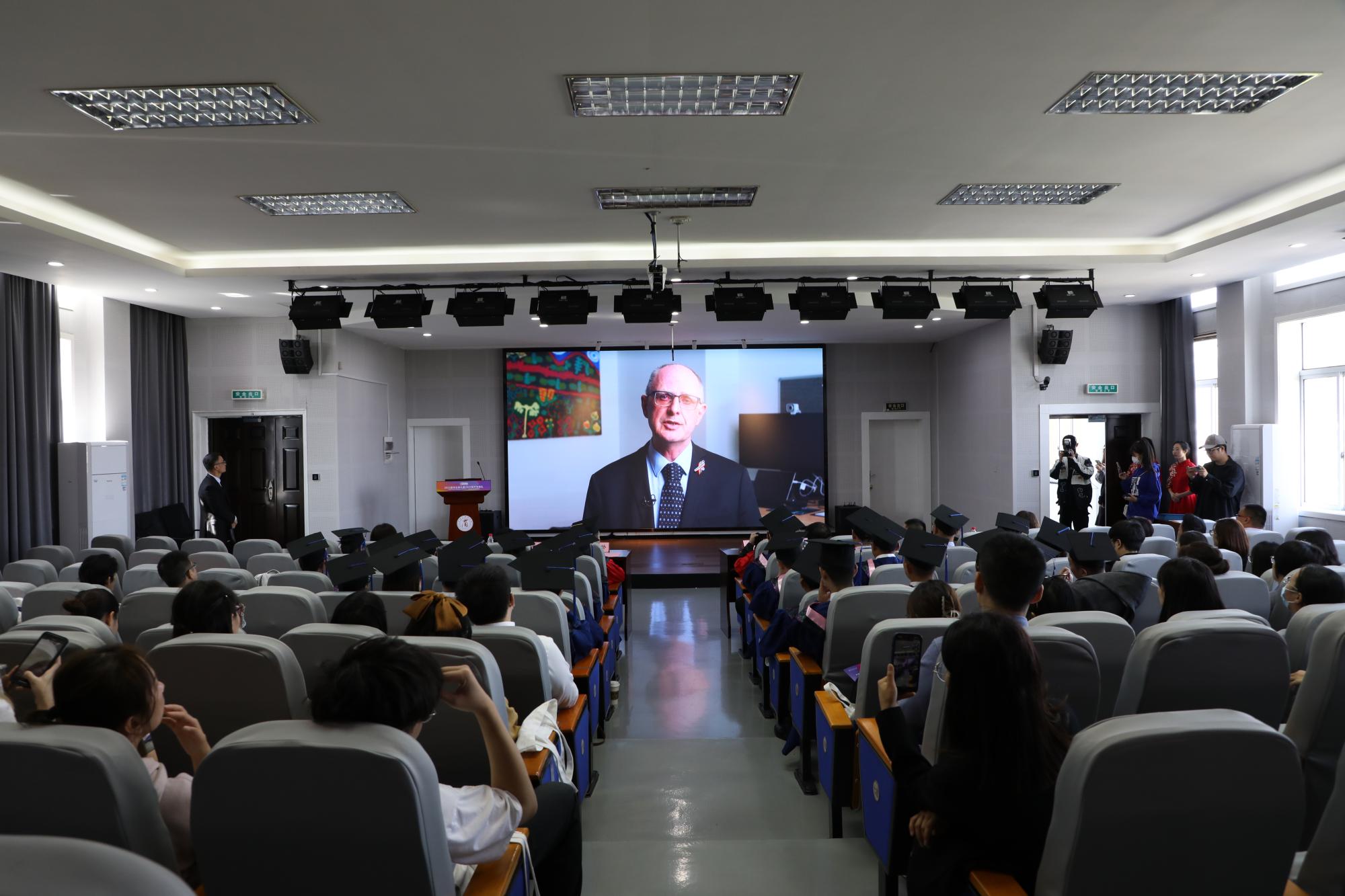 特殊时期,澳大利亚堪培拉大学的教学副校长Geoff Crisp教授再次以视频方式向现场学员们表示祝贺并送上祝福。他和堪培拉大学相关团队所有成员都为宁波中澳MBA项目学员在疫情期间克服种种困难,最终成功完成学业感到由衷自豪,他感谢两校团队的专业、努力与辛勤付出,同时也高度赞誉了h图书馆 和澳大利亚堪培拉大学通过中澳MBA项目所建立起的深远、坚固的友谊。澳大利亚堪培拉大学是一所年轻但充满活力的大学,致力于研究型和应用型教学,目前全球综合排名已晋升至前1%,且位于“全球建校50周年以下大学排行榜”前20位。从澳大利亚堪培拉大学的硕士项目毕业,对所有毕业生来说,都是一种荣耀,它不仅只意味着一张高质量教育文凭,还意味着成为全球颇具影响力的商业、政府和社群校友组织的一员。他热忱欢迎宁大中澳MBA项目的毕业生加入堪培拉大学的校友会,向未来构建国际化发展人际网络迈出新的一步。