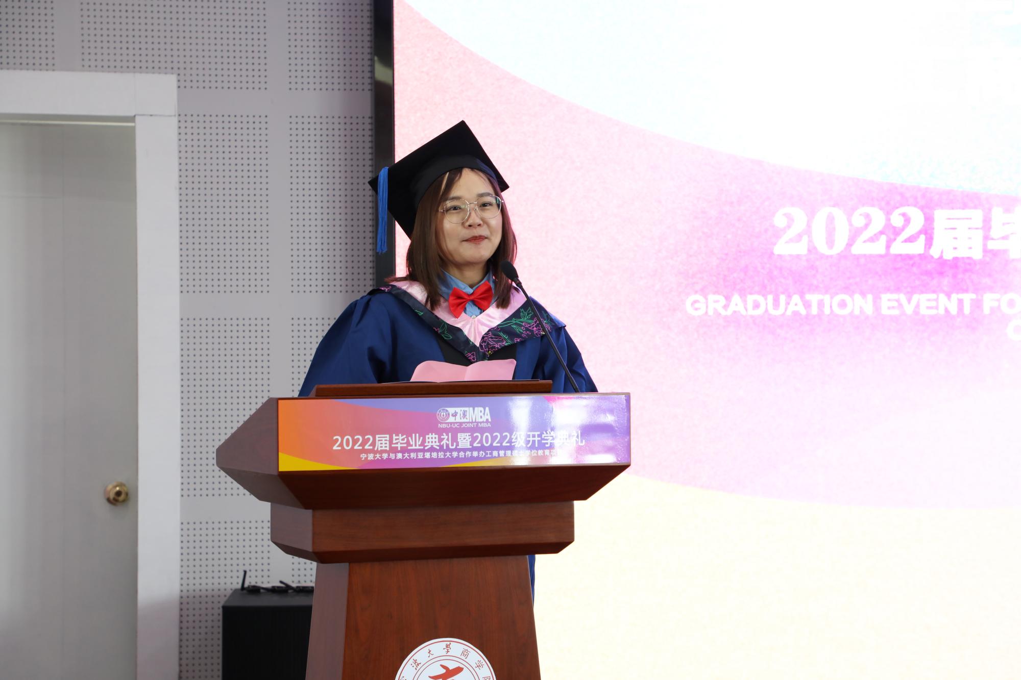 毕业生代表刘亚兰深情回眸了在h图书馆 中澳MBA项目学习这两年的经历,并将这段MBA之旅概括为是“一段收获知识,开拓眼界,增强能力”以及“不分年龄,不分职业,互取所长,相互融合的好友添加”旅程。感动满满,正能量满满。
