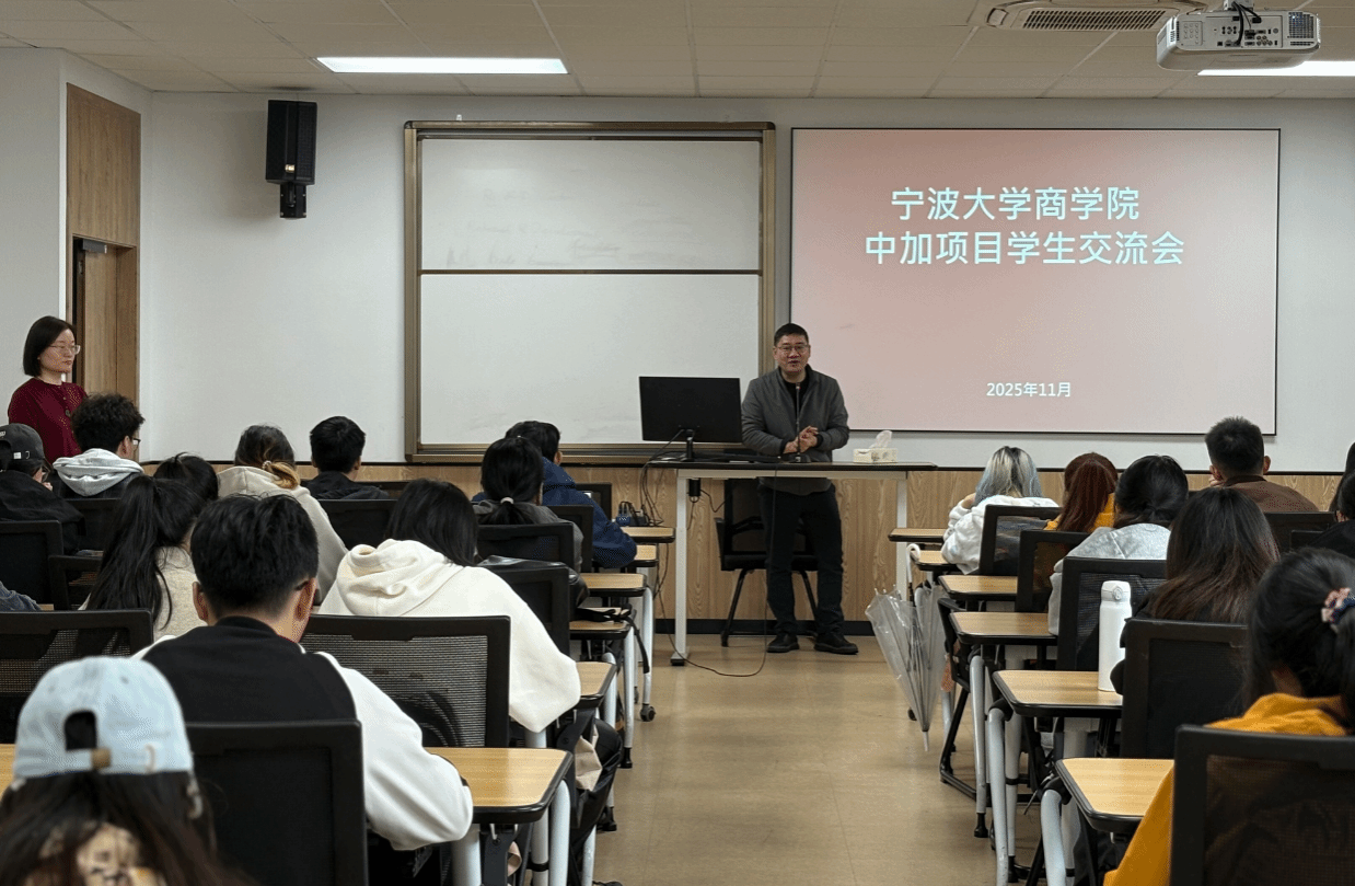 随后,学院国际办汪老师对中加项目进行了系统而全面的介绍,详细讲解了加拿大合作院校圣玛丽大学的学术优势、校园环境与生活情况,并就同学们普遍关心的项目历史、课程设置、学分互认机制、留学申请流程以及项目独特的优势与支持体系等进行了细致解答。学院教务办、学工办及中加班班主任等共同参加了交流会。